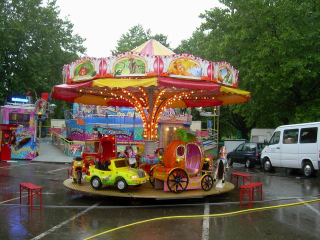 Auch im Westallgäu, besser gesagt in Wangen, wird am letzten Juli-Wochenende ein Kinderfest gefeiert. Das dortige Volksfest ist zwar ein bischen kleiner als die nahen Pendanten auf der anderen Seite der Autobahn in Baden-Württemberg, aber vielleicht auch gemütlicher. Unweit des Zentrums, am Allgäu-Stadion wird neben einer kleinen Zeltstadt auch ein kleiner und feiner Vergnügungspark aufgebaut. Leider wurde der Regen auf der bayrischen Seite der A 96 immer stärker, so daß ich, verständlicherweiße über einen halb geschlossenen und fast leeren Festplatz gehuscht bin bevor dann Petrus endgültig die Schleußen geöffnet hat.