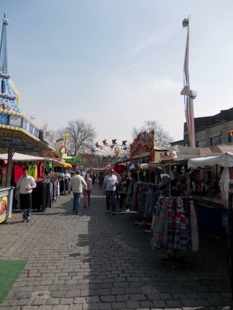 Der Platz wurde wieder mit einer Mischung aus Fierantenmarkt und Volksfest bebaut und lebt da er fast Mitten in der Fürther Innenstadt und unweit vom Hauptbahnhof liegt auch sehr stark vom täglichen Laufpublikum, welches auch am Dienstag Nachmittag den Platz bevölkerte. Die Firma Eschenbacher baute diesmal Ihren Twister auf dem Platz am Beginn der Freiheit auf und wurde linkerhand vom Extrem, der Neuerwerbung der Fa. Mölter flankiert. Der Fähtz-Twister von Frank Eschenbacher von 1975, der nur noch wenige Male im Mittelfränkischen Raum im Laufe der Saison aufgebaut und betrieben wird, war auch der Grund für den 3. hintereinander folgenden Platzbesuch Eures Berichterstatters in der Fränkischen Metropol-Region.